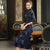 3/4 Sleeve Tea Length Floral Corduroy Traditional Cheongsam Chinese Dress